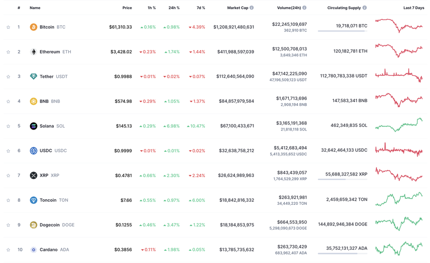 Nonostante il declino generale del mercato questa settimana, con una capitalizzazione di mercato totale in calo da 2,35 trilioni di dollari a 2,28 trilioni di dollari, Solana si è distinta con un notevole aumento del 10,47%. Al contrario, Bitcoin ed Ethereum hanno registrato un calo. Nel frattempo, Toncoin ha scalato la classifica, superando Dogecoin e diventando l’ottava criptovaluta per capitalizzazione di mercato.