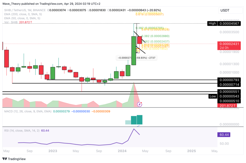 Vale la pena notare che il prezzo di Shiba Inu rimane all’interno di un canale discendente parallelo, suggerendo una fase di correzione in corso nel medio termine.