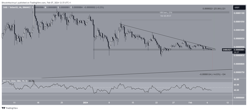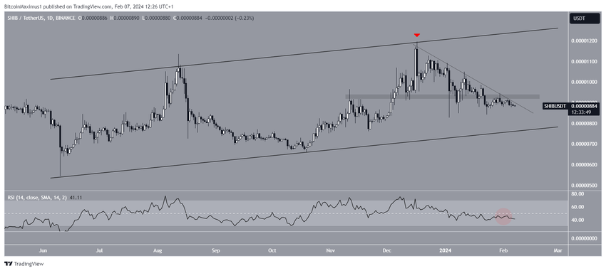 Il prezzo di Shiba Inu (SHIB) è diminuito dal 27 dicembre 2023. Recentemente ha rotto al ribasso un’area di supporto orizzontale.