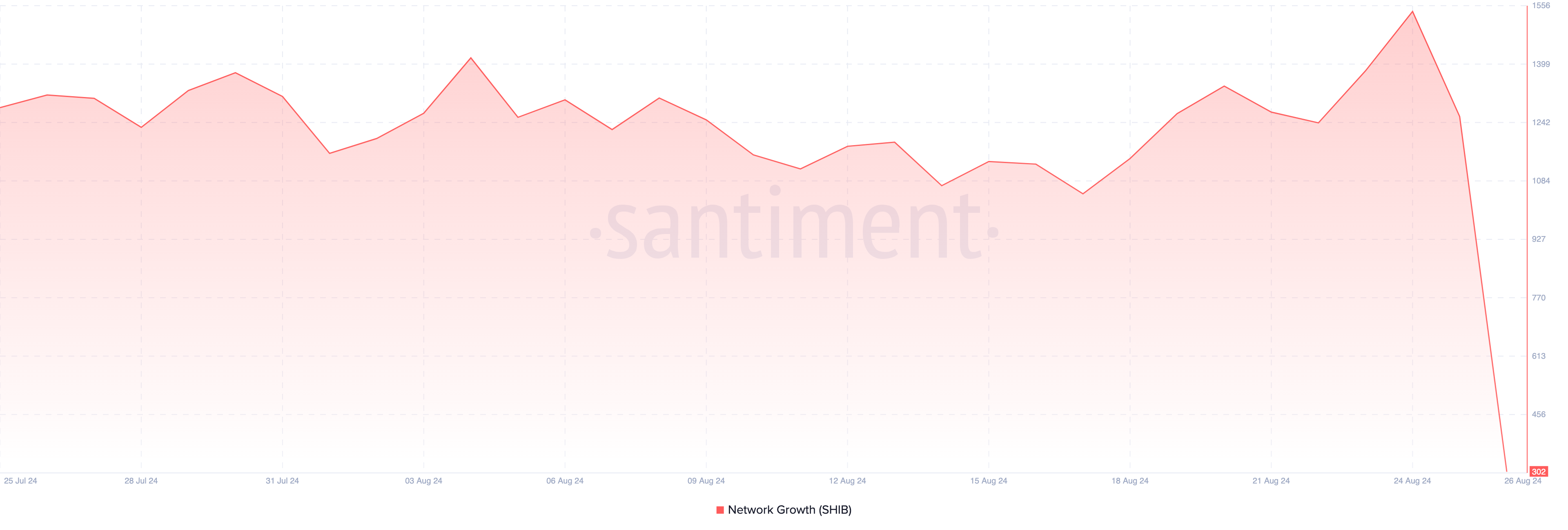 A contribuire ulteriormente alle prospettive ribassiste è il calo della crescita della rete di Shiba Inu, un indicatore chiave dell’adozione e della trazione degli utenti. La crescita della rete misura il numero di nuovi indirizzi che effettuano la loro prima transazione sulla blockchain. In genere, un aumento segnala una domanda crescente, che può far salire i prezzi.
