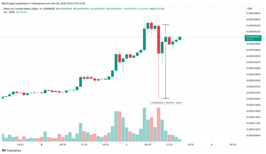 Il prezzo di Shiba Inu (SHIB) sulla piattaformadiscambio statunitense Coinbase è crollato del 50% martedì. Questo brusco calo è in contrasto con un rendimento più stabile su altre piattaforme di scambiare.