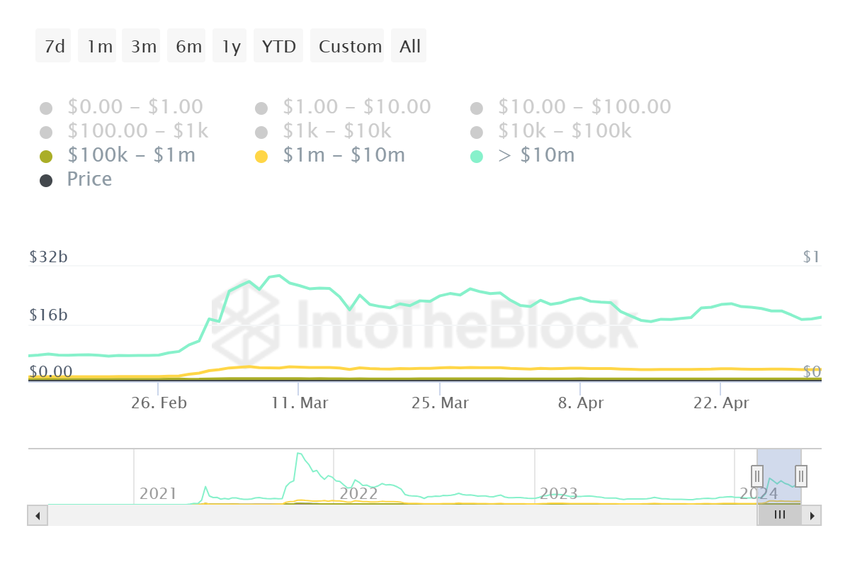 Negli ultimi due mesi, gli indirizzi che detengono più di 1 milione di dollari e 10 milioni di dollari di SHIB hanno venduto una grossa fetta della loro offerta. Quasi 10 miliardi di dollari di SHIB hanno lasciato i loro portafogli, creando un impatto ribassista sulla meme coin.