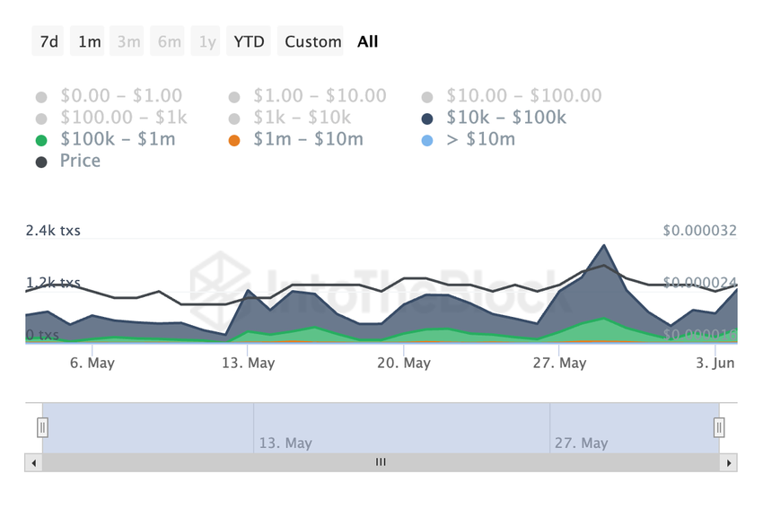 Nel caso di SHIB, l’aumento dell’attività di whale della moneta meme è attribuibile alla crescita del mercato generale dei meme nel mese di maggio.