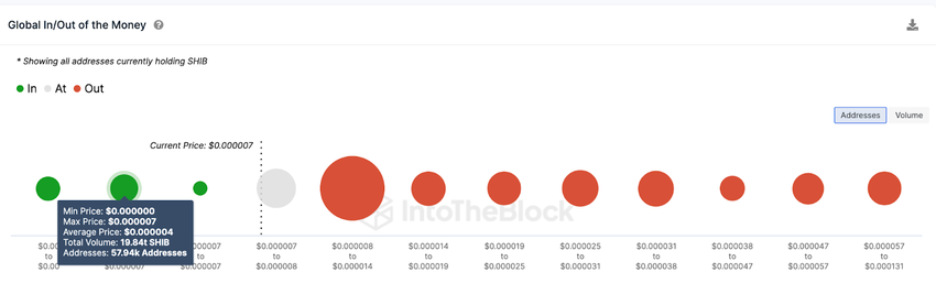 Evidenzia che 57.940 milioni di investitori hanno acquistato 19,8 trilioni di token SHIB al prezzo massimo di 0,000007 dollari. Se il tasso di combustione dei token dovesse aumentare, potrebbero mantenere le loro posizioni e innescare un primo rimbalzo del prezzo di SHIB.