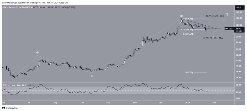 Uno sguardo più attento al time frame giornaliero suggerisce che SOL sta ancora correggendo. Ciò è dovuto all’azione dei prezzi, al conteggio delle onde e alle letture RSI.