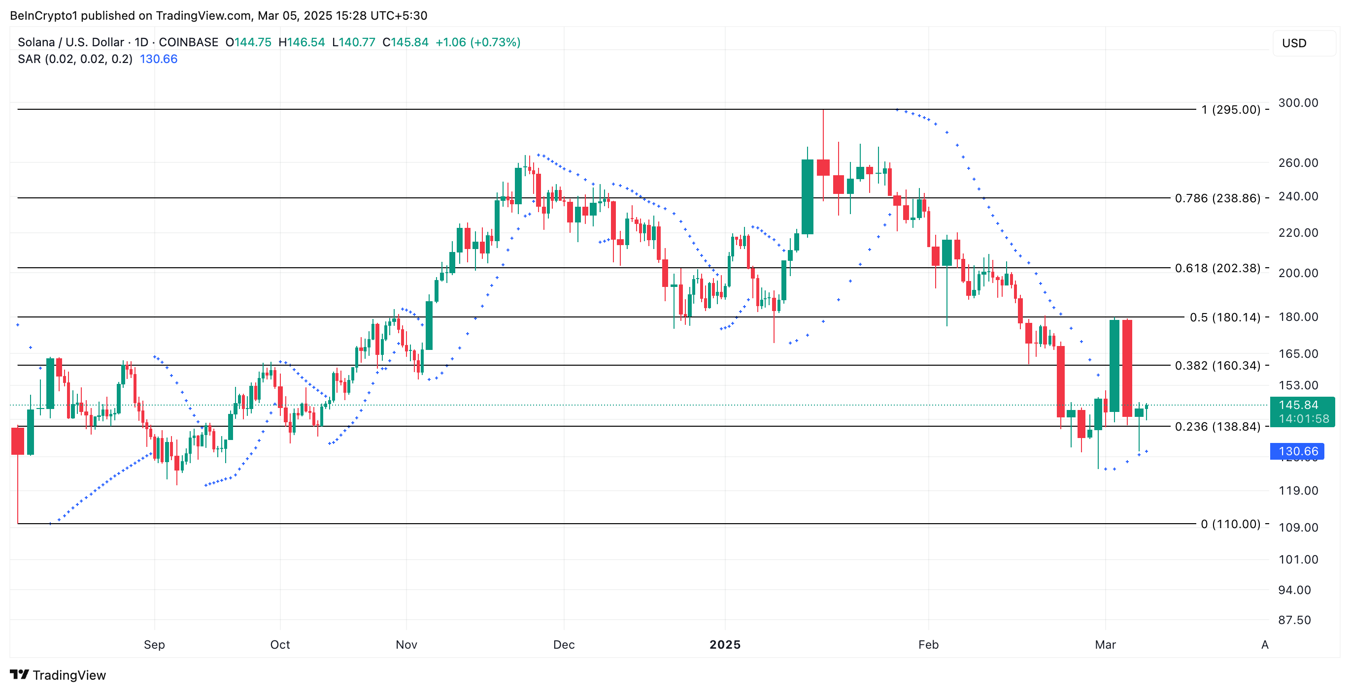 Tuttavia, sul grafico giornaliero, i rialzisti di SOL sembrano pronti a difendere livelli chiave. Le letture degli indicatori tecnici, tra cui il Parabolic SAR, suggeriscono che il momentum di acquisto sta guadagnando forza.