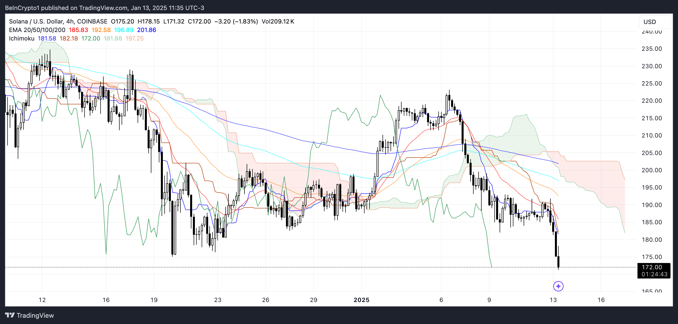SponsoredSolana Ichimoku Cloud conferma un setup ribassista