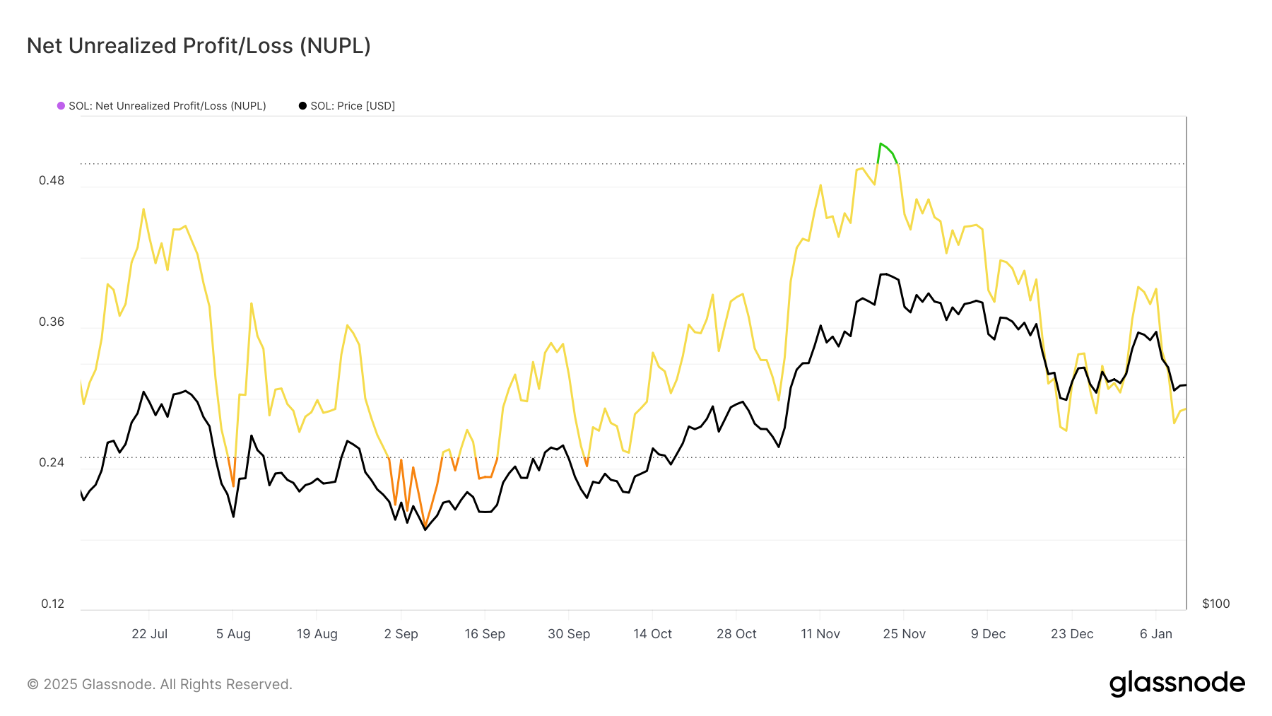 Il Profitto/Perdita Non Realizzato Netto (NUPL) per Solana si sta avvicinando alla Zona di Paura, segnalando un sentimento cauto tra gli investitori. Storicamente, un calo in questa zona è stato seguito da recuperi nel prezzo, poiché il mercato inizia a stabilizzarsi. Questa tendenza indica che Solana potrebbe sperimentare un rimbalzo simile se i profitti non realizzati continuano la loro traiettoria discendente.