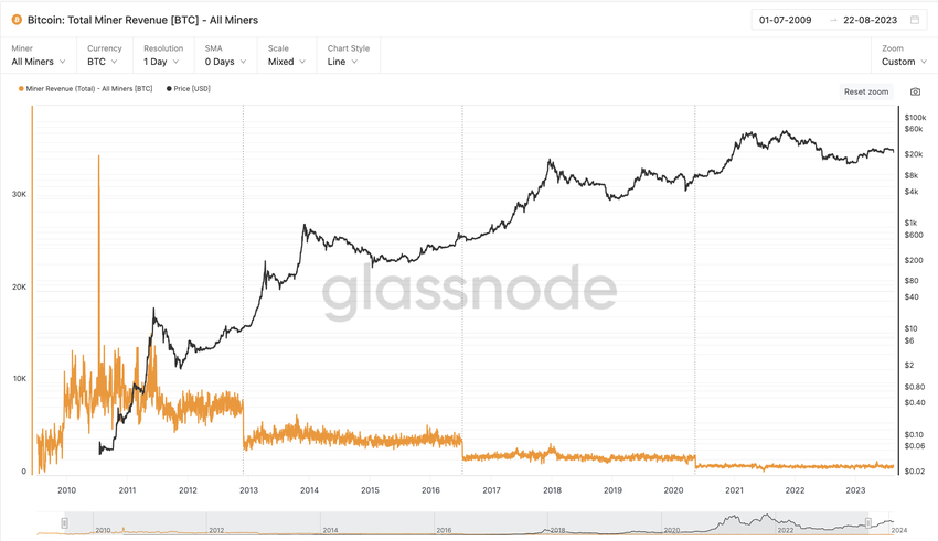 Nonostante il potenziale per un nuovo mercato dei rialzisti, il dimezzamento esercita una forte pressione sui minatori di Bitcoin, riducendo istantaneamente le loro entrate del 50%, a meno che il prezzo del BTC non aumenti di conseguenza.