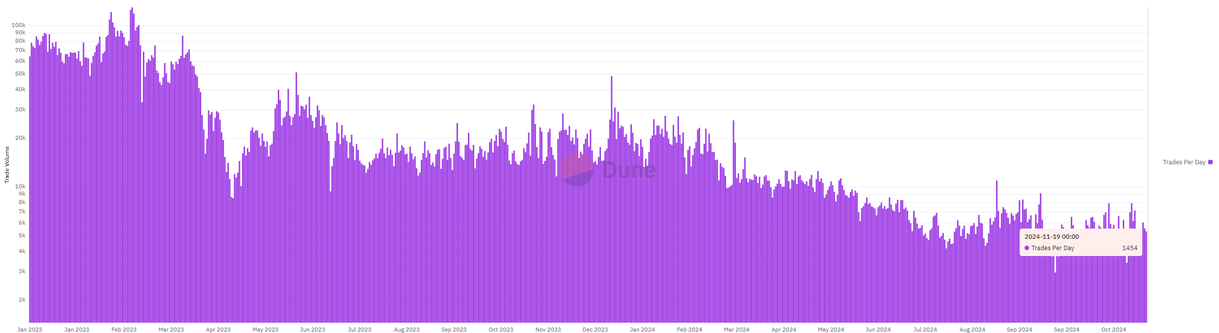 Nonostante questi segni di rinascita, il mercato degli NFT ha lottato durante tutto il 2024. I dati mostrano che il 98% delle collezioni di NFT ha visto un’attività di trading minima, riflettendo un mercato saturo.
