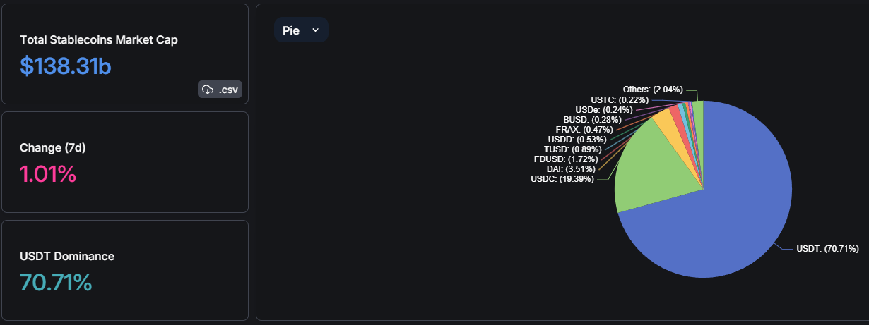 USDC, la seconda più grande stablecoin dopo USDT di Tether, occupa un posto significativo nel mercato delle valute digitali. Con un valore di mercato di 26,8 miliardi di dollari, USDC rappresenta quasi il 20% del mercato delle stablecoin. Le due stablecoin insieme controllano quasi il 90% della quota di mercato totale delle stablecoin.