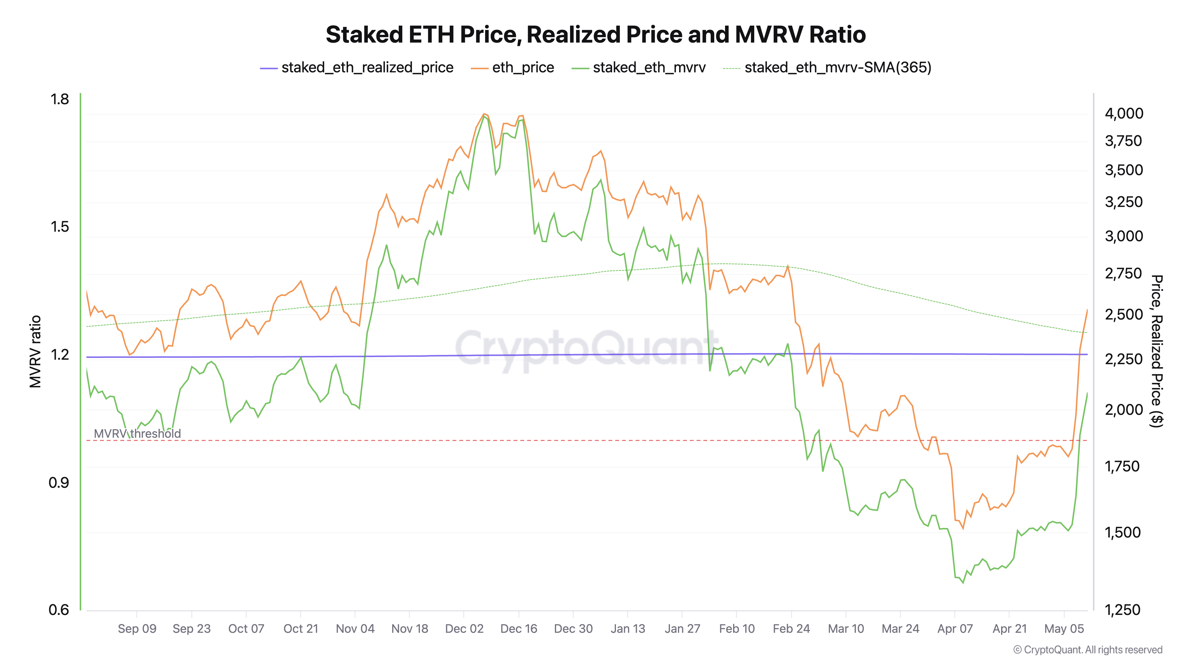 SponsoredTuttavia, il rally del mercato della scorsa settimana ha spinto il valore di ETH sopra i $2.279 il 9 maggio. Questo ha sollevato le monete in staking sopra il loro costo base realizzato, segnalando un ritorno alla redditività.