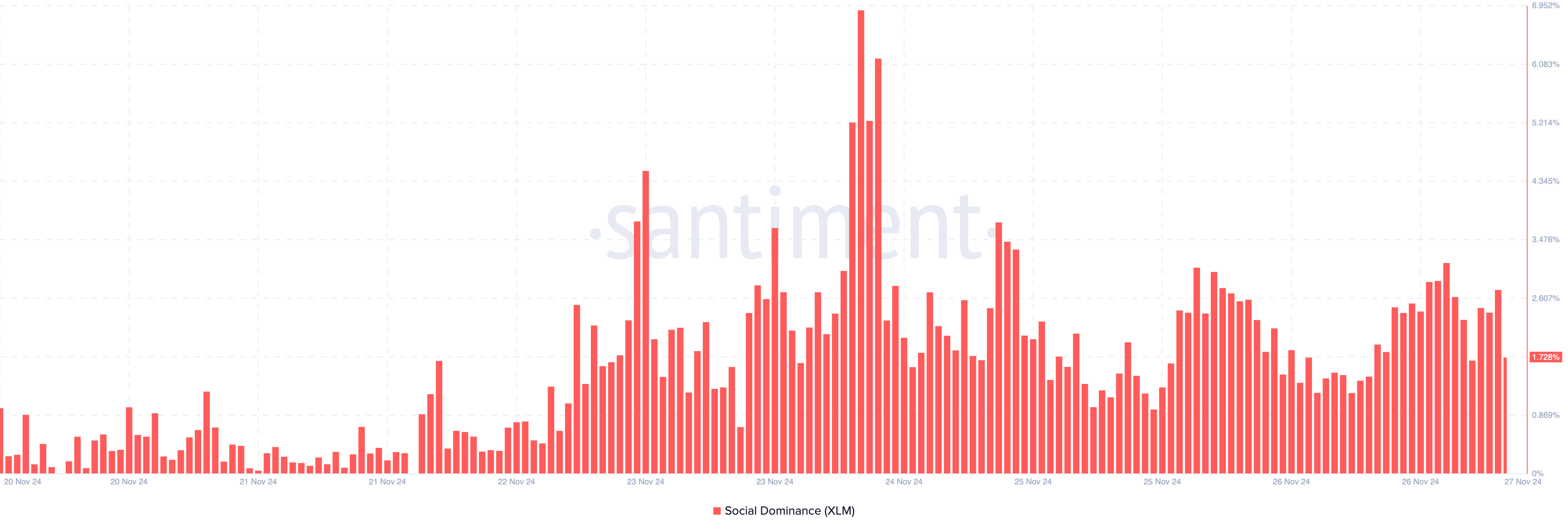 Qualche giorno fa, la dominanza sociale di XLM era al 3,13%. Tuttavia, è scesa significativamente all’1,73%, implicando che i partecipanti al mercato stanno spostando la loro attenzione su altri asset. Se questa tendenza persiste, potrebbe portare a ulteriori cali di prezzo per XLM.