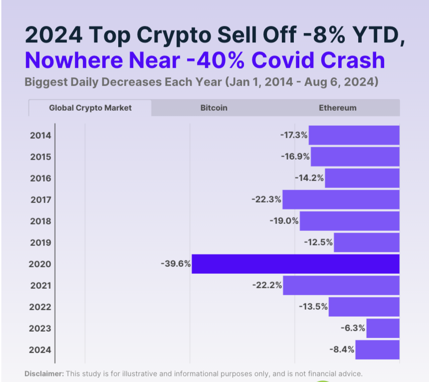 Mentre i partecipanti al mercato affrontano la paura, CoinGecko ha pubblicato una prospettiva tranquillizzante. L’aggregatore di dati sulle criptovalute sostiene che il recente calo del Bitcoin e del mercato delle criptovalute in generale è di lieve entità, ben lontano dal segnalare un grave declino.