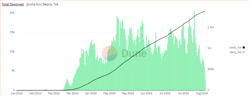 “Il 25 agosto, pump.fun ha registrato 5.987 transazioni, il numero più basso di lanci di token dal 28 marzo. Questo drastico calo dell’attività suggerisce che l’appetito del mercato per i nuovi token si sta esaurendo, con i trader che si sentono sopraffatti da un’economia memecoin troppo satura”, si riporta nel rapporto.