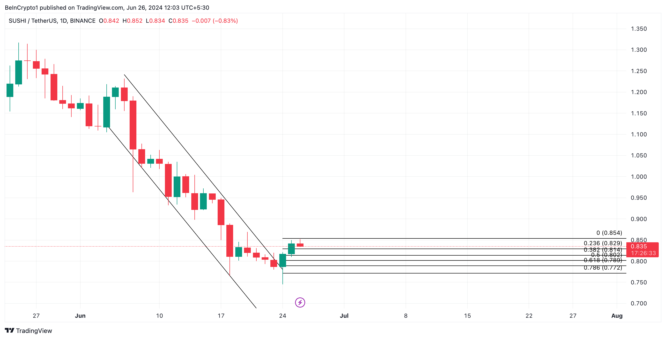 Tuttavia, se lo slancio degli acquisti è sostenuto e i rialzisti riprendono il controllo completo, potrebbero essere in grado di guidare il prezzo di SUSHI verso 0,85 dollari.