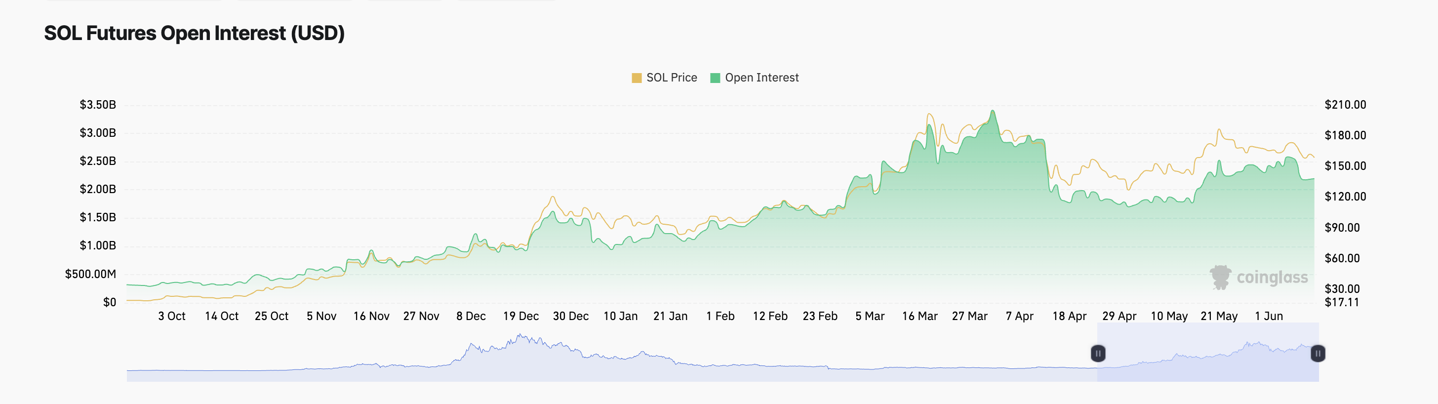 La tendenza non è diversa tra i trader del mercato dei futures della moneta. Dall’inizio di giugno, l’open interest dei contratti a termine di SOL ha avuto una tendenza al ribasso. A 2,2 miliardi di dollari, è diminuito del 15%.