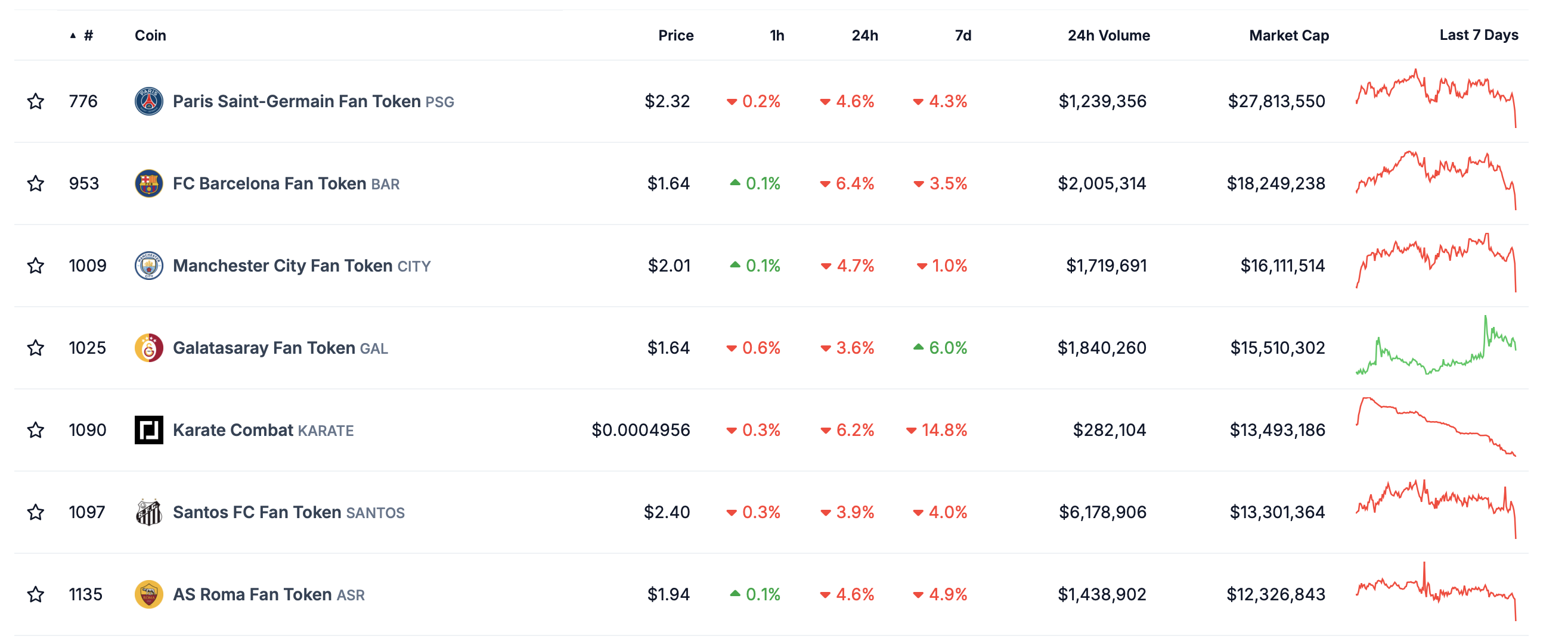 Altre criptovalute da tenere d’occhio sono AVL, CPFC ed EFC, i token dei tifosi rispettivamente di Aston Villa, Crystal Palace ed Everton FC. In base ai dati di CoinGecko, CITY e AFC figurano tra i primi 10 token dei tifosi per capitalizzazione di mercato. Il più grande è il token del Paris Saint-Germain, PSG, al di fuori della Premier League.
