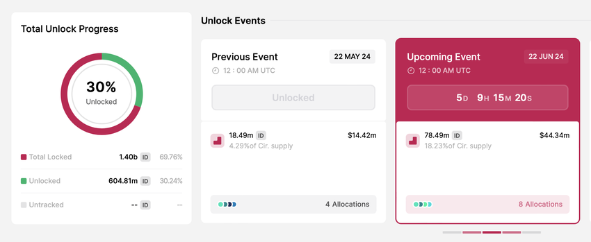 - Numero di token sbloccati: 78,5 milioni di ID
