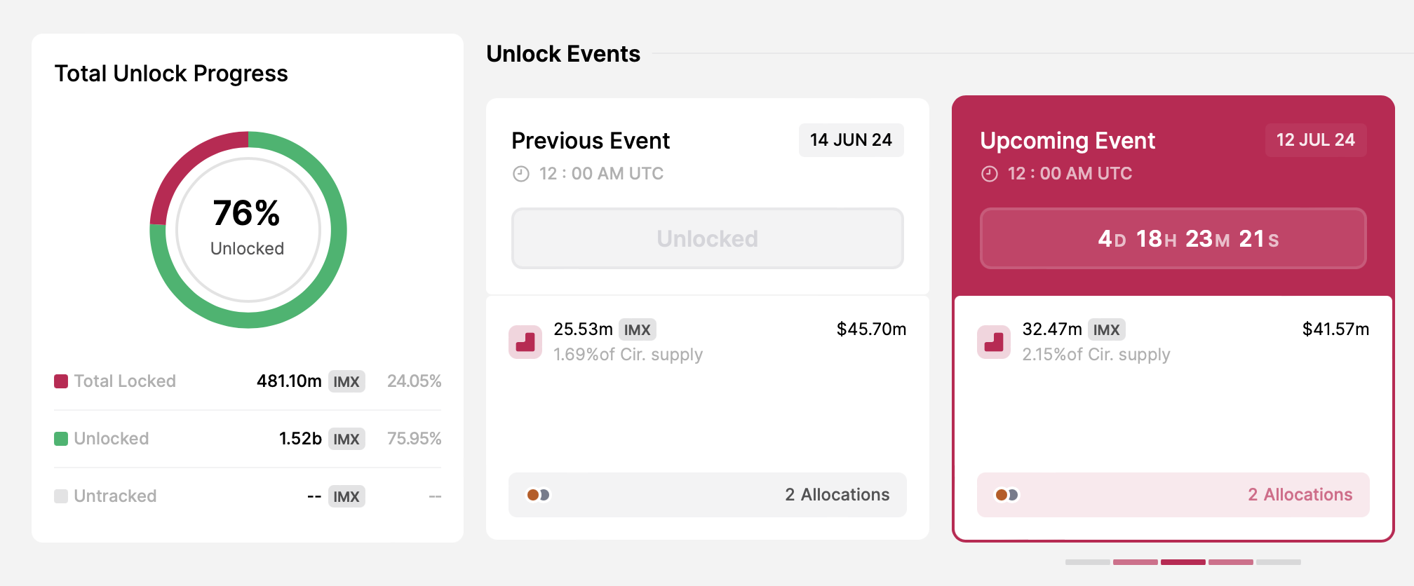 - Numero di token sbloccati: 32,47 milioni di IMX