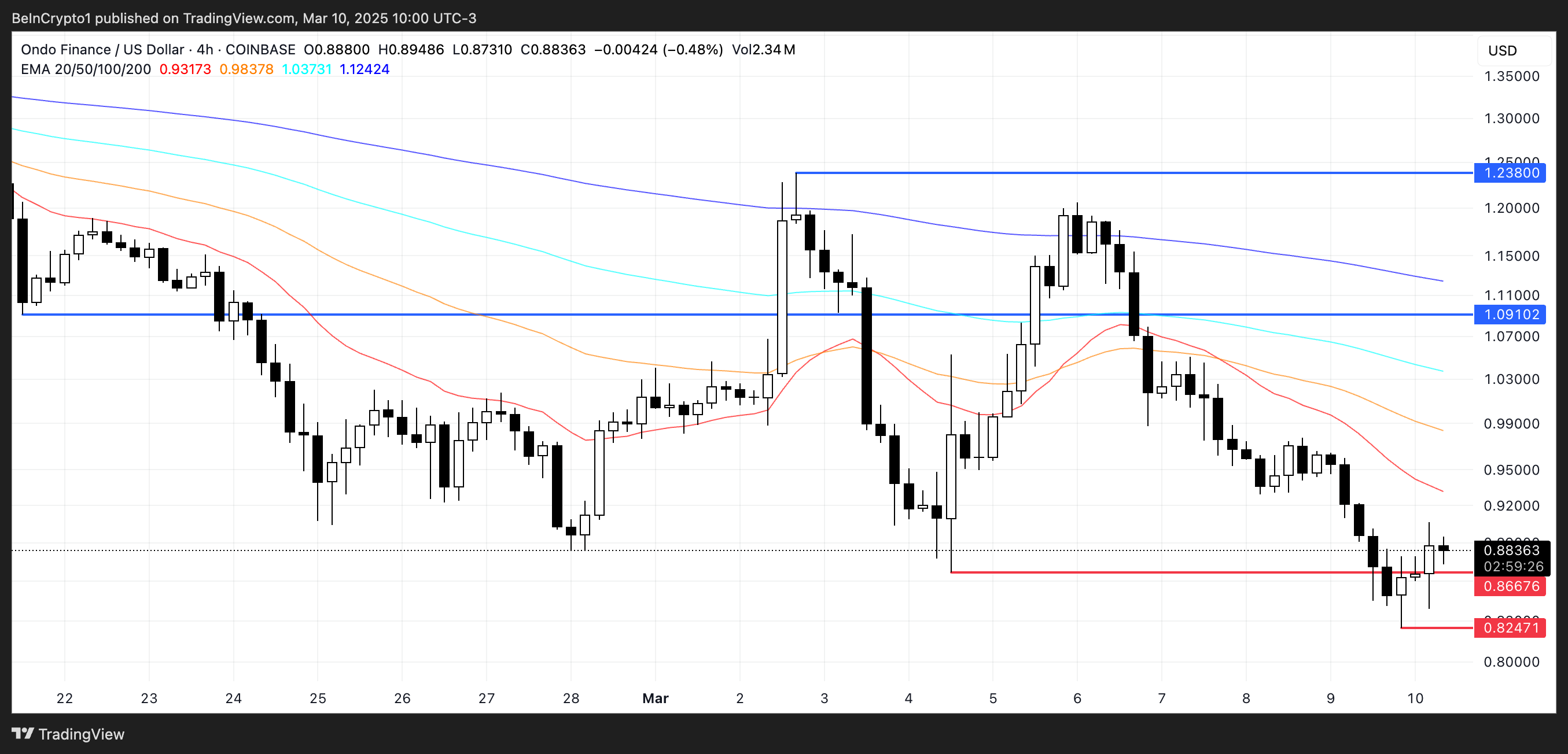 Se il declino continua, ONDO potrebbe testare il supporto a $0,866, con un breakdown che potrebbe portarlo fino a $0,82.