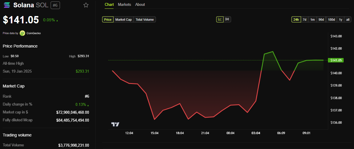 Secondo i dati di Solscan, l’ecosistema di Solana vanta quasi 4 milioni di wallet attivi. Nel frattempo, i dati di DefiLlama mostrano fino a 7,37 miliardi di dollari in valore totale bloccato (TVL). Con questi numeri, la conferenza della community di Solana potrebbe generare un sentimento positivo per SOL, che era scambiato a $141,05 al momento della pubblicazione.