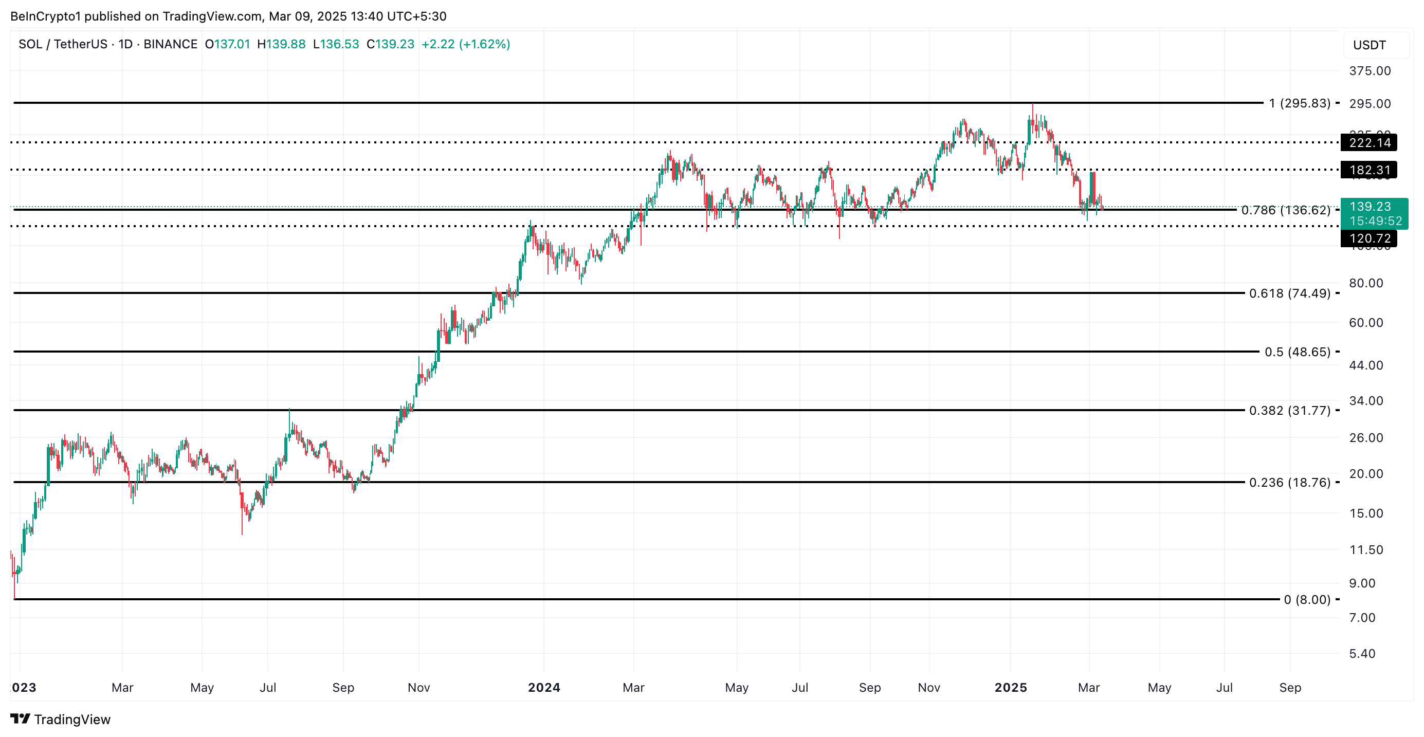 Se ciò accadesse, il prezzo di SOL potrebbe scendere sotto $130 per scambiare a $120,72.