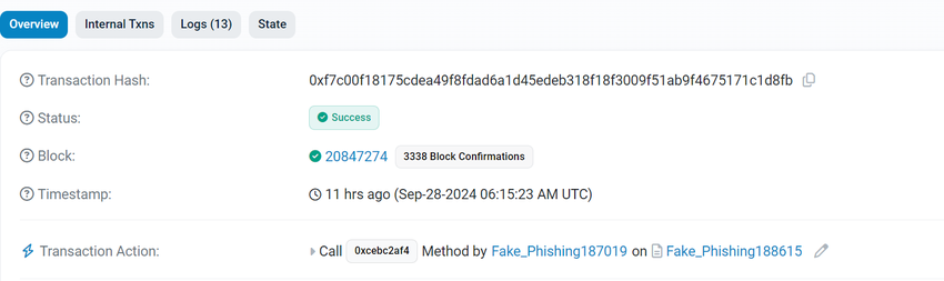 L’incidente è avvenuto alle 06:15 UTC dopo che il proprietario del portafoglio ha firmato una firma di phishing “permit”.