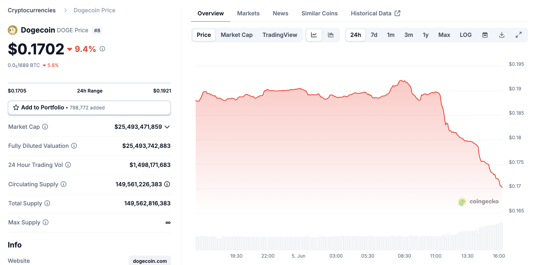 La disputa ha portato a un calo del 9% di Dogecoin, sebbene il suo impatto sia attualmente limitato alle meme coin nel mercato crypto più ampio.