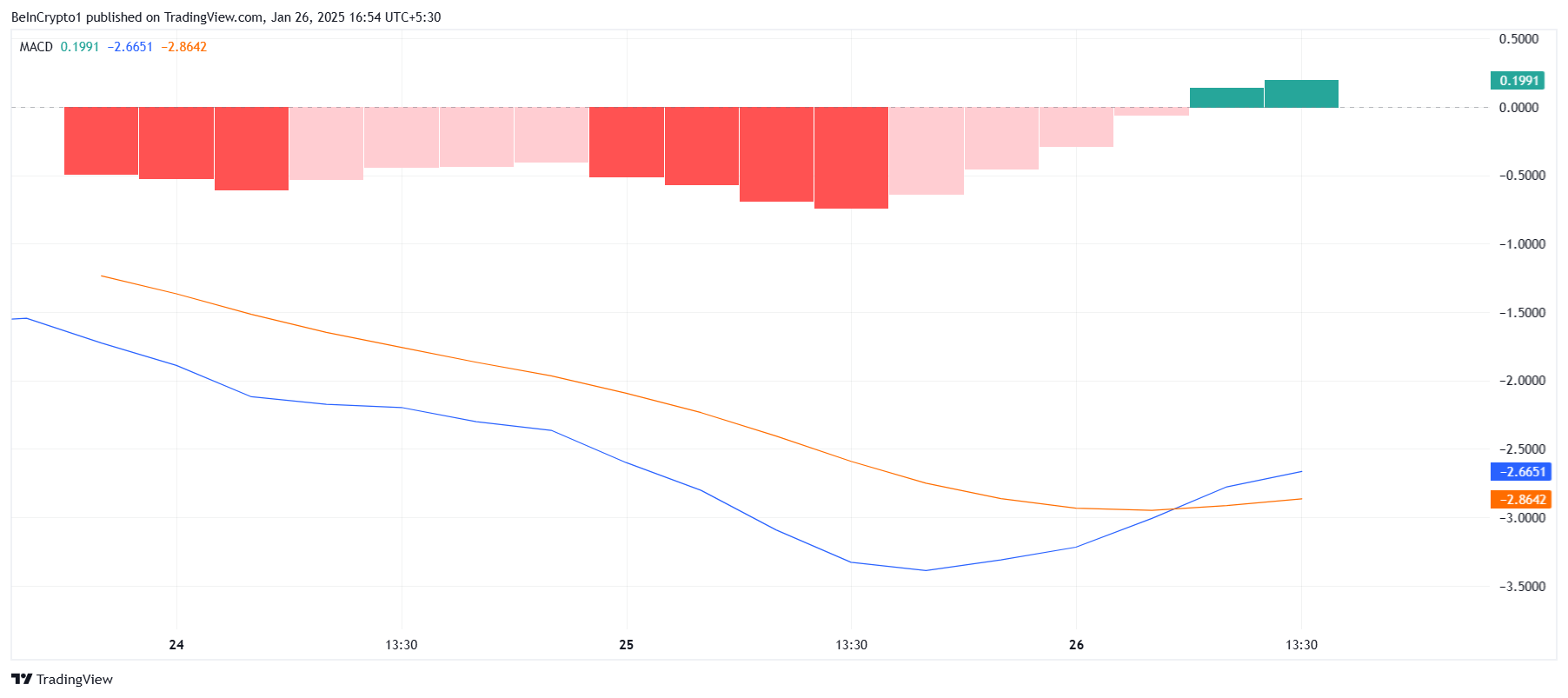 Nonostante il calo del sentimento, alcuni indicatori tecnici suggeriscono che TRUMP potrebbe avere spazio per recuperare. In particolare, il Moving Average Convergence Divergence (MACD) ha recentemente mostrato un crossover rialzista. Questo sviluppo suggerisce un momentum positivo nel mercato delle criptovalute più ampio, che potrebbe fornire i venti favorevoli di cui TRUMP ha bisogno per ritrovare stabilità.