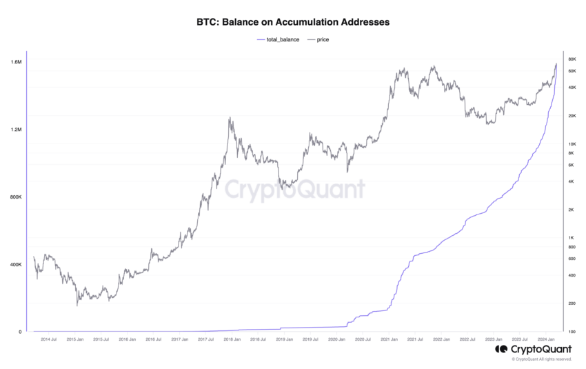 Inoltre, l’analisi di Ju fa luce sull’accumulo di Bitcoin da parte dei portafogli che ricevono solo transazioni. Questa tendenza all’aumento degli indirizzi di accumulo segnala un crescente comportamento di accumulo. Se dovesse continuare, potrebbe preannunciare l’inizio di una crisi di liquidità sul lato vendita.