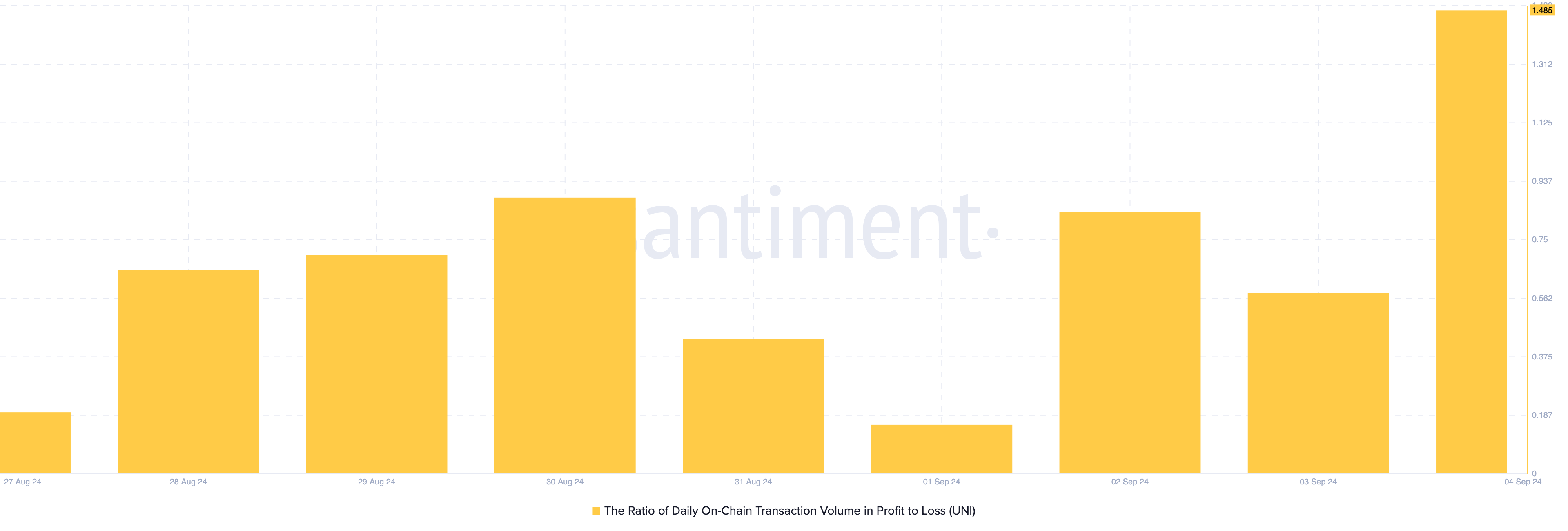 Inoltre, il rapporto tra il volume delle transazioni giornaliere on-chain in profitto e perdita è salito a 1,48. Ciò significa che più partecipanti al mercato stanno realizzando guadagni rispetto a perdite.