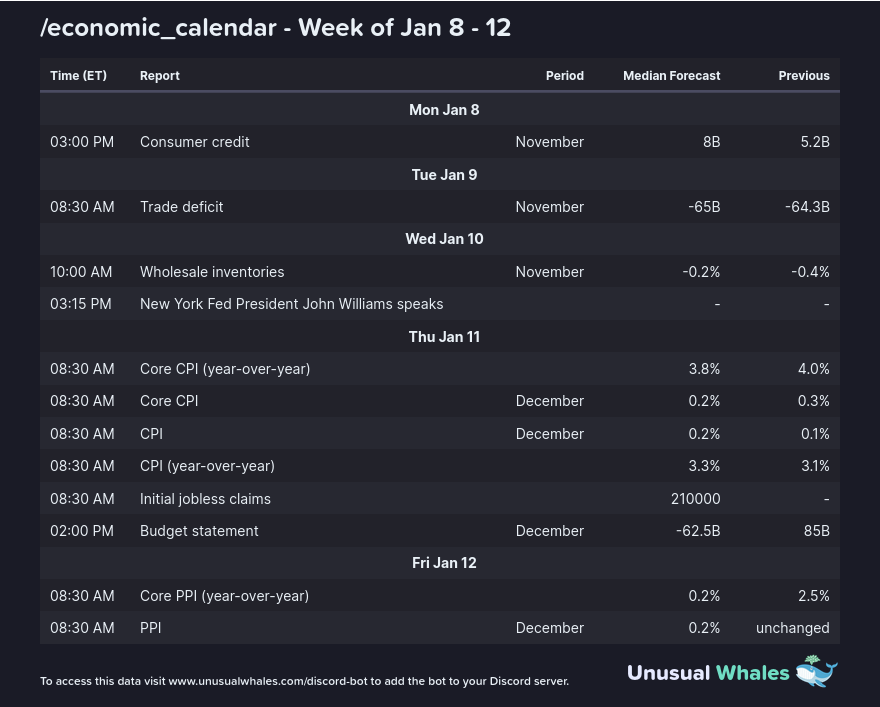 Tuttavia, le cose potrebbero farsi interessanti giovedì, quando verrà riportato l’indice dei prezzi al consumo di dicembre. I dati dell’indice dei prezzi al consumo sono l’evento clou del calendario economico della settimana. Questi riporti aiutano i mercati a valutare se l’inflazione continua la sua tendenza al ribasso o si ferma vicino al 3%.