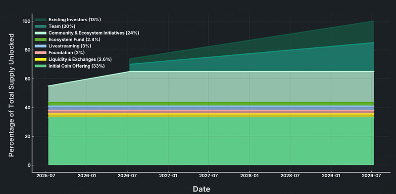 Secondo BitMart, il 33% della fornitura totale è stato allocato per la raccolta fondi a $0,004 per token, con tutti i token sbloccati al lancio. Questo ha creato una pressione di vendita fino a 1,32 miliardi di dollari.