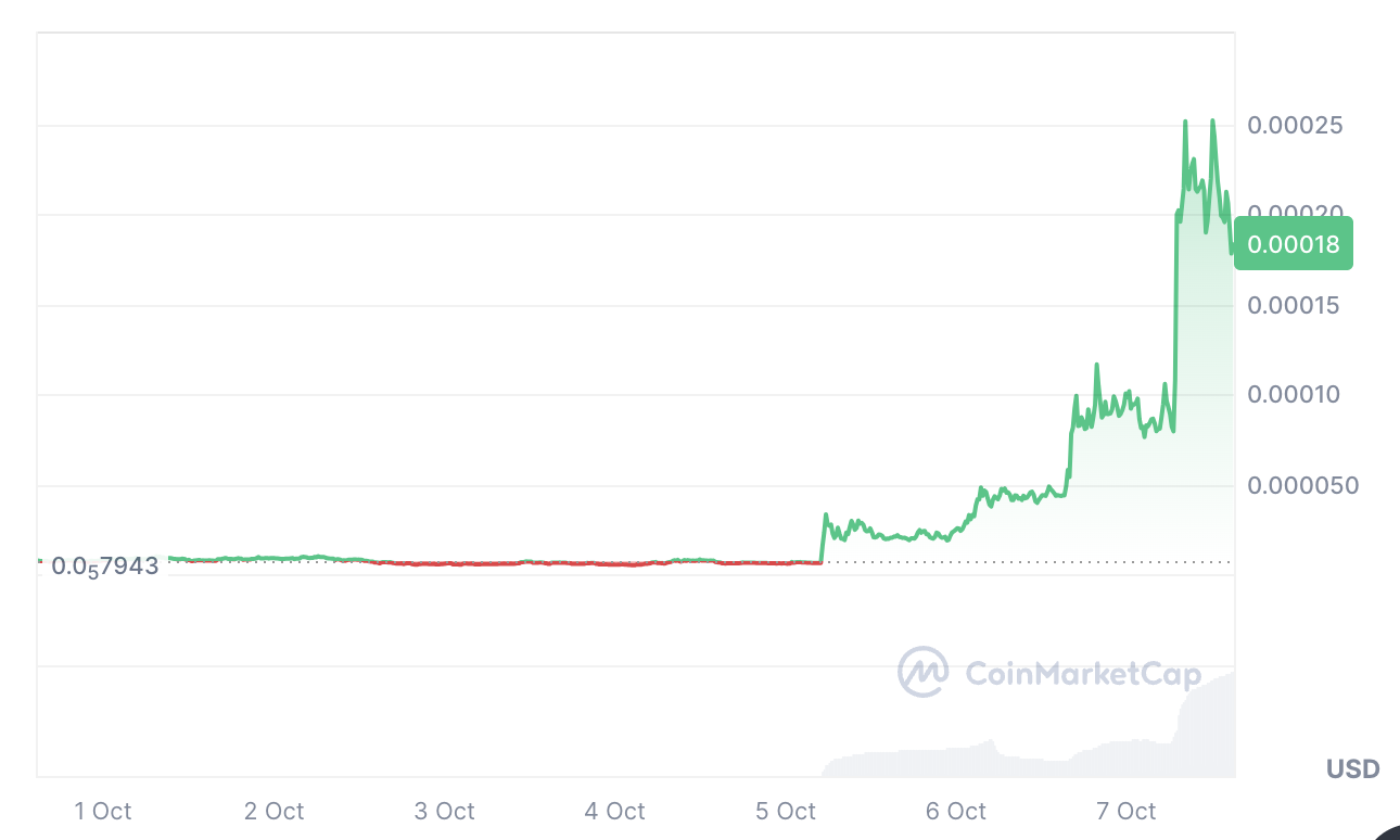 Prestazione del prezzo di MOODENG. Fonte: CoinMarketCap