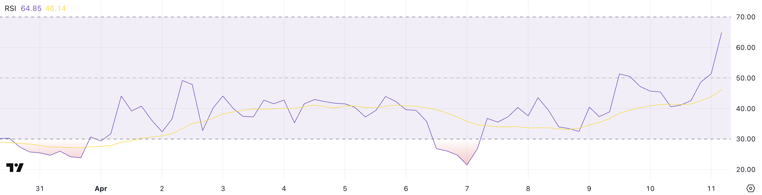 Con l’RSI di VIRTUAL vicino a 70—ma senza superarlo—mostra una crescente forza, anche se non ha raggiunto livelli di ipercomprato dal 24 marzo, suggerendo un seguito limitato dietro il recente aumento.
