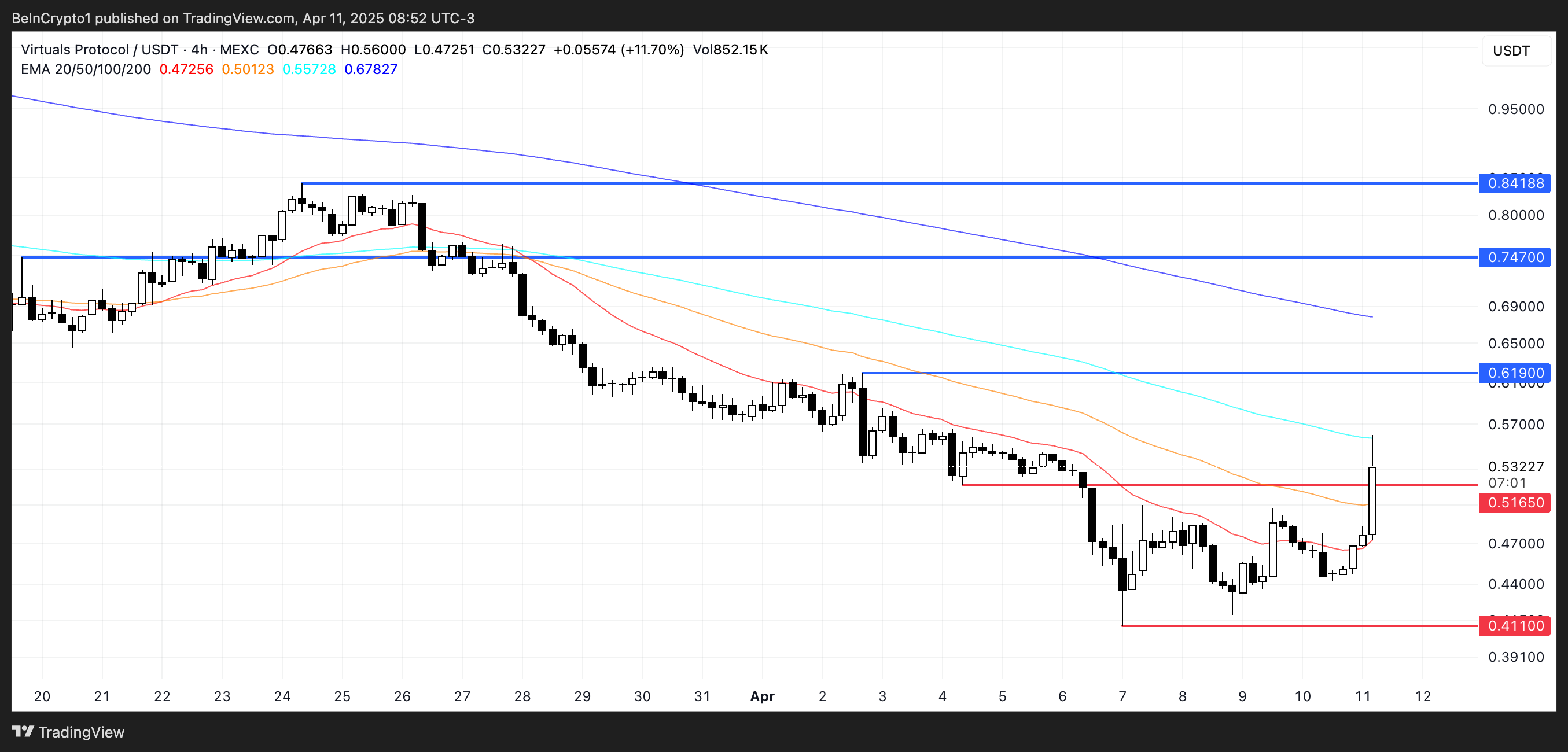 Se il recente rally svanisce, il prezzo di VIRTUAL rischia di scendere al suo supporto immediato vicino a $0,516.