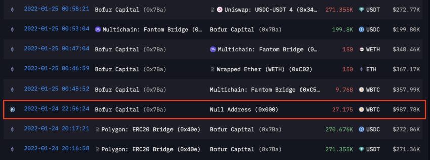 SponsoredAd esempio, un wallet associato a Bofur Capital ha 1,8 milioni di dollari in wrapped Bitcoin (WBTC) bloccati nel bridge Arbitrum per 27 mesi.