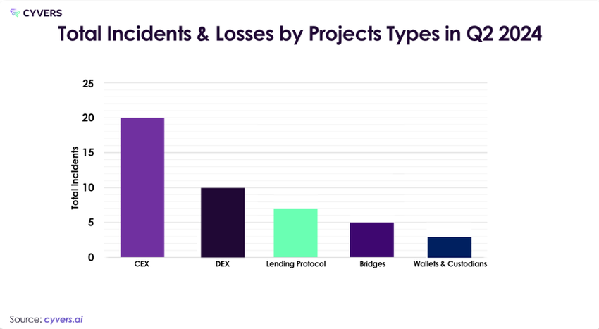 Nel frattempo, nei settori DeFi, il team di Cyvers ha riportato che gli exchange decentralizzati (DEX) hanno subito incidenti significativi. Tuttavia, questi sono stati meno gravi di quelli che hanno colpito le loro controparti centralizzate.