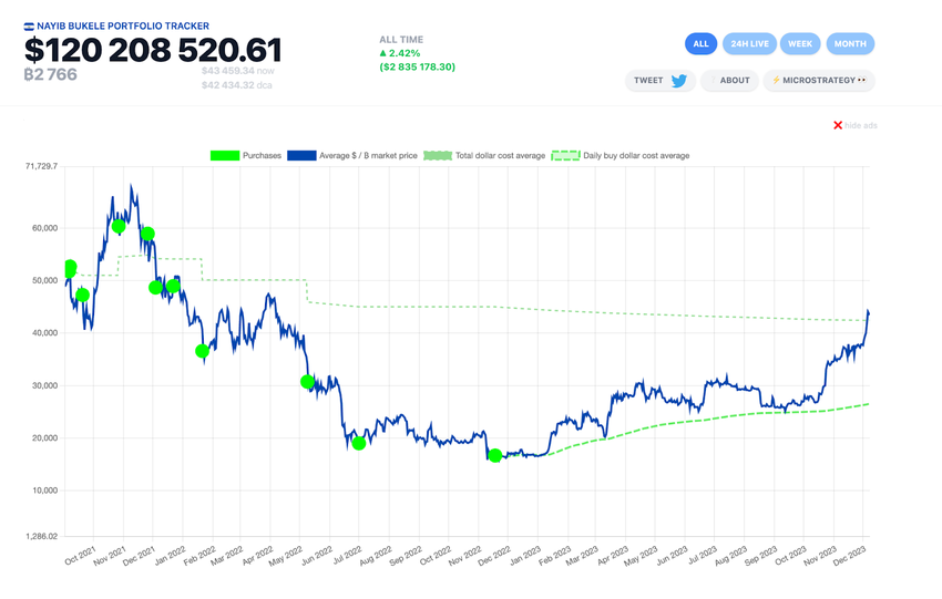 Al momento in cui scriviamo, il portafoglio di El Salvador è in crescita del 2,42%, con un profitto non realizzato di 2,8 milioni di dollari.