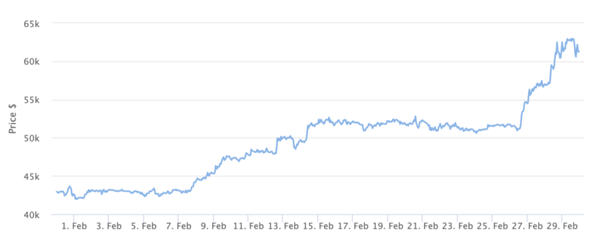 SponsoredAl momento della pubblicazione, il Bitcoin si aggira intorno ai 61.259 dollari. Questo dato mostra un aumento del 19,37% nell’ultima settimana e una crescita di circa il 42% negli ultimi 30 giorni.