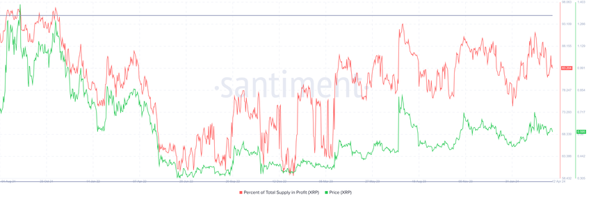 Le probabilità che ciò avvenga all’interno della rete Ripple sono elevate, dato che c’è spazio per ulteriori profitti. I guadagni complessivi dei ribassisti al momento sono all’83%, molto più bassi della soglia delle condizioni che formano un top di mercato.