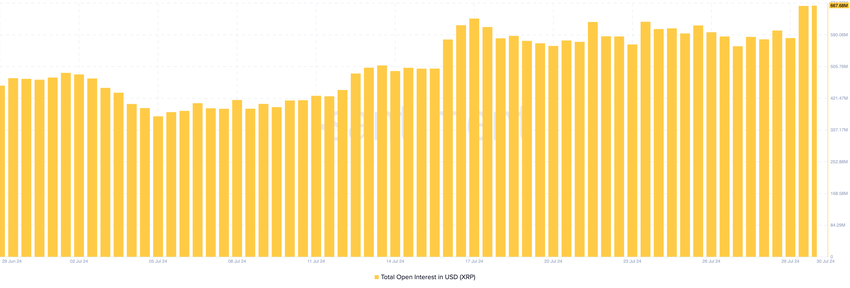Inoltre, l’open interest del token nativo di Ripple è salito al livello più alto dal 16 aprile. Al momento della stampa, l’OI, come viene affettuosamente chiamato, è di 667,68 milioni di dollari. L’Open Interest si riferisce alla somma del valore dei contratti aperti sul mercato.