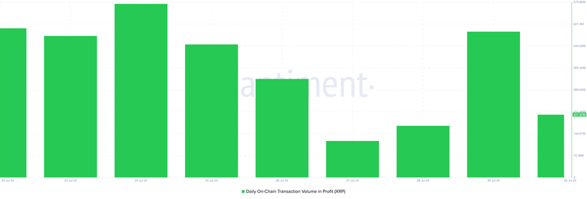 In genere, un aumento dei profitti realizzati esercita una pressione al ribasso sul prezzo di una criptovaluta. Tuttavia, per XRP è diverso, perché il 29 luglio il volume dei profitti era superiore a 480 milioni. Ma al momento in cui scriviamo, è due volte inferiore, il che indica che le prese di profitto sono diminuite.