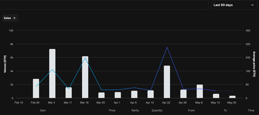 Volume di trading di CryptoPunks. Fonte: Opensea
