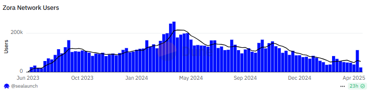 Sponsored SponsoredNel frattempo, i dati su SimilarWeb mostrano che il traffico sulla piattaforma Zora.co è sceso da 500.000 a 300.000 negli ultimi tre mesi. I dati su Dune indicano anche che gli utenti sulla Zora Network sono diminuiti del 90% dal picco di inizio aprile 2024.